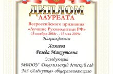 От имени всего коллектива поздравляем нашу уважаемую заведующую Резеду Максутовну с высоким званием "Лучший руководитель РФ". Желаем Вам от всей души здоровья, неиссякаемой энергии, творческих успехов, новых побед и достижений! Мы гордимся Вами! 18.10.2019