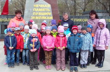 Накануне праздника Дня Победы дети старшей группы ходили на экскурсию к памятнику погибшим воинам-землякам.