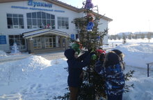 Наши гимназисты украсили самодельными игрушками ёлки около бассейна «Дулкын».
