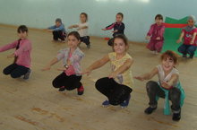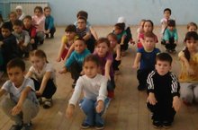 В гимназии продолжается акция «Приседайте на здоровье». На снимке - обучающиеся 3б класса