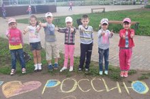 Россия көне уңаеннан, укучылар асфальтка рәсем ясадылар. -