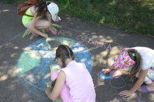 Бу көнне балалар белән җыелып һәйкәл янына бардык. Гөлназ Рифкатовна бик эчтәлекле итеп чыгыш ясады. Бер минут тынлыктан соң балалар үзләре ясаган чәчәкләрне һәйкәлгә куйдылар. Аннан соң һәрбер отряд асфальтка сугыш, тынычлык темасына рәсем ясады