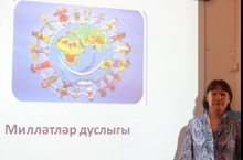 Бүген инглиз теле укытучысы Обечова Р.С. "Дуслык белән көчле без" дигән темага ачык класс сәгате үткәрде.