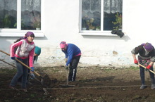 Мәктәп бакчасында яшелчә утырту эшләре бара
