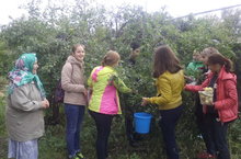 3 һәм 4 нче сыйныф укучылары тыл ветераны 89 яшьлек Мофаваза әбигә көзге уңышны җыярга булыштылар. Мофаваза әби балаларның ярдәменнән бик канәгать булды. Аларга үзенең авыр үткәне турында сөйләде. Аш-су остасы буларак, балан бәлеше пешерү серләренә дә өйрәтте.