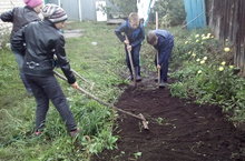 Өлкәннәргә ярдәм итү йөзеннән 6-7 нче сыйныф укучылары Гөлүсә апаның бакчасында түтәлләрне тәртипкә салдылар.