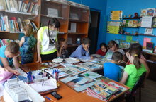 Мәктәп яны лагерена йөрүче балалар авыл китапханәсенә бардылар. Алар анда яңа газета -журналлар карадылар, сканвордлар чиштеләр, викторина сорауларына җавап бирделәр.