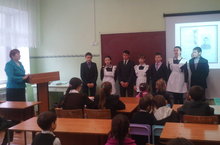 Г.Тукайның 130 еллыгына багышланган "Гомерендә - халкы язмышы, җырларында - халкы моңнары" дигән чара үткәрелде. Тукай! Бу исем бик җылы булып безнең күңелләргә мәңгелеккә урнашкан. Гомер буе ул безнең йөрәк түребездә идеал булып саклана, сүнмәс йолдызбулып балкып тора. Безнең күңелләрдәтуган илгә, туган халыкка, туган телгә мәхәббәт хисе әнә шулай Тукай исеме белән бергә туа. 7 нче класс укучылары бөек шагыйребез турында шигырьләр сөйләделәр, җырлар җырладылар, викторина сорауларына җавап бирделәр.
