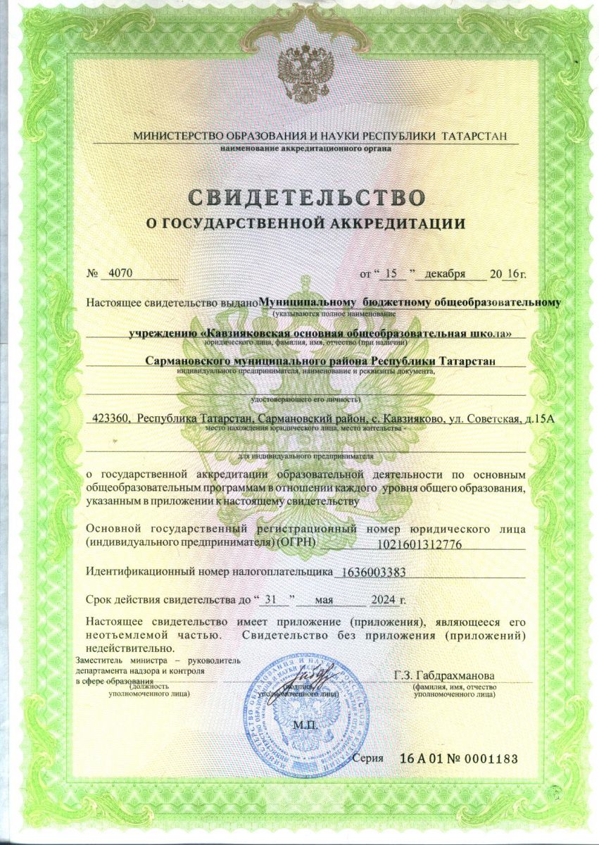 Муниципальное бюджетное общеобразовательное учреждение «Кавзияковская основная общеобразовательная школа» Сармановского муниципального района Республики Татарстан