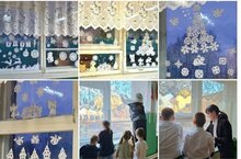 Учащиеся начальных классов приняли участие в Акции "Новогодние окна" . Они вырезали ВЫТЫНАНКИ из бумаги и красиво оформили свои окна. -