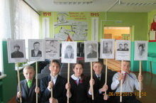 Бөек Җиңү көне. 10.05.2015 Укучылар обелискка венок салдылар.