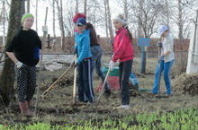Мәктәп тирәсен, обелиск территориясен чистарту, матурлау эше дәвам итә.