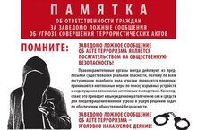 Памятка о юридической ответственности за заведомо ложное сообщение об акте терроризма, а также несанкционированное использование беспилотных воздушных судов