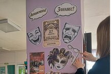 Активисты детского движения школы красочно оформили афишный столб.Все ждут выступления участников школьного театра "Огоньки сцены"