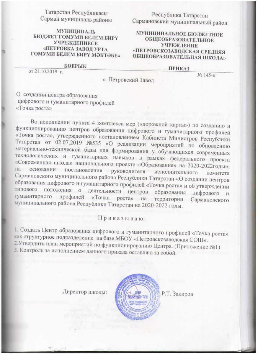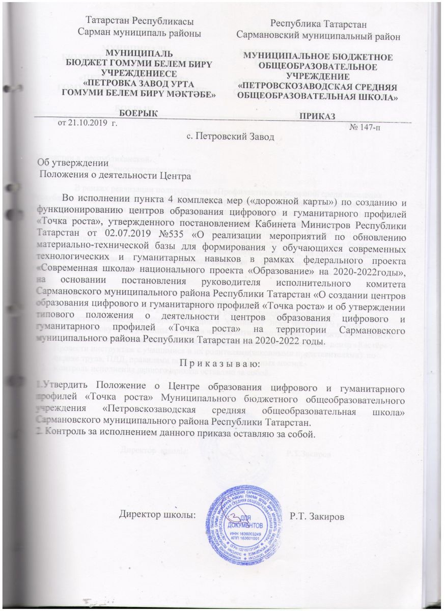 - Постановление "О создании центров образования цифрового и гуманитарного профилей "Точка роста"