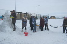 Бәйрәмгә Төлке, аю баласы-Тәпән кунакка килде.Кыш бабай балаларга кар шарына тутырып бик күп итеп бүләкләр алып килде.