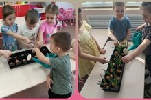 Икенче кечкенәләр төркеме балалары яшел кыякка суган утырттылар. Эш барышында суган яхшы үссен өчен нинди шартлар тудырырга кирәклеге турында сөйлэштеләр.Тәрбияче Захарова А.Ф.