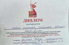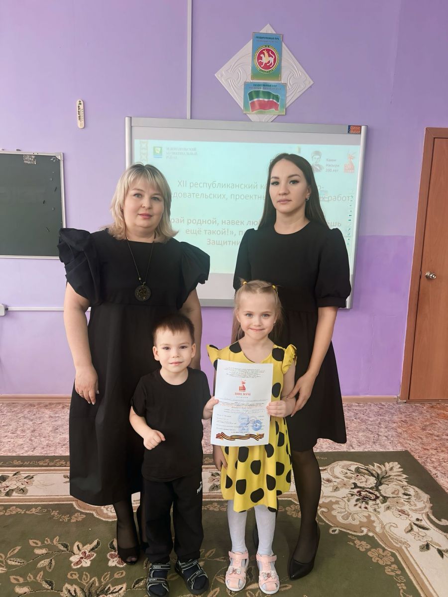 Павлов Мирослав и Старкова Айлина (воспитатели Гайфуллина Р.А., Сафина А.Р.) приняли участие во XII республиканском конкурсе научно – исследовательских работ дошкольников и младших школьников «Край родной, навек любимый, где найдешь еще такой!» и заняли 3 место в номинации «Великой Победе посвящается».Поздравляем!