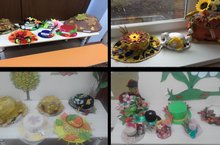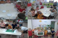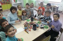 Уртанчылар төркеме балалары тәрбиячеләре Света Мөнәвир кызы белән берлектә кисеп ябыштыру шөгылендә "Чәчәкләр клумбасы" темасына күмәк эш ясадылар. 29.09.2017