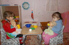 С целью закрепления знаний детей о посуде, активизирования речи детей, воспитания культуры поведения во время еды, заботливого отношения к куклам, воспитатель Карамова Ф.И. организовала сюжетно-ролевую игру "Кормление куклы Кати".