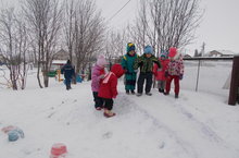 После новогодних каникул с новыми силами, ребята пришли в детский сад. Играли в подвижные игры, катались с малой горки, насыпали корм в кормушку.