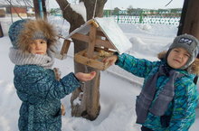 Кышкы салкыннарда канатлы дусларыбызны онытмыйбыз, саф һавага уйнарга чыккач аларга җим бирәбез.
