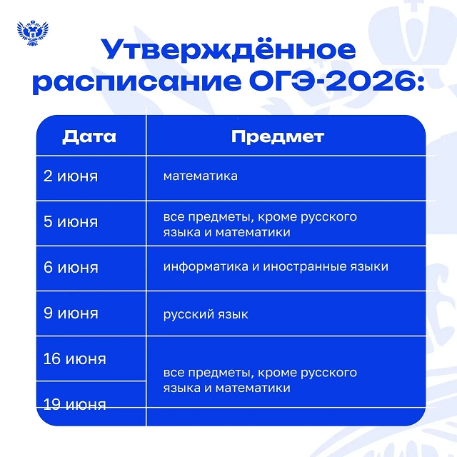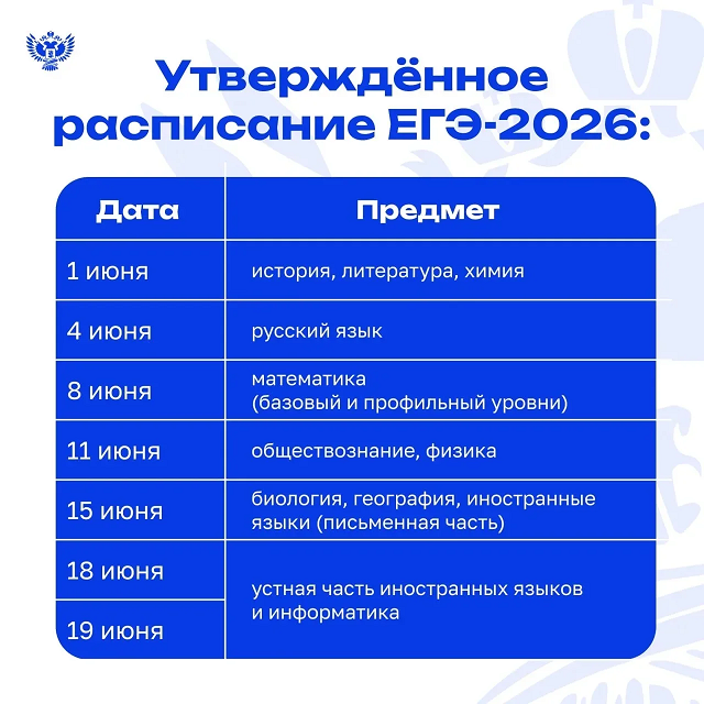 Утвёржденное расписание ОГЭ/ ЕГЭ - 2026 12.12.2025