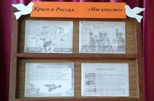 В школе проходят мероприятия, приуроченные воссоединения Крыма с Россией. Педагогом- библиотекарем школы Галиной Д.А. сделан тематический стенд для учащихся."Крым и Россия. Мы вместе". Крымның Россия белән кушылуына багышланган класс сәгатьләре, чаралар уза. Педагог-библиотекарь укучылар өчен "Крым һәм Россия - без бергә!" дип аталган стенд әзерләде. 17.03.2021
