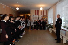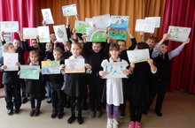 "Буду бдительным на льду" рәсем конкурсында җиңүчеләр. Аларның эшләре мәктәп турыннан узып, муниципаль турга җибәрелде.