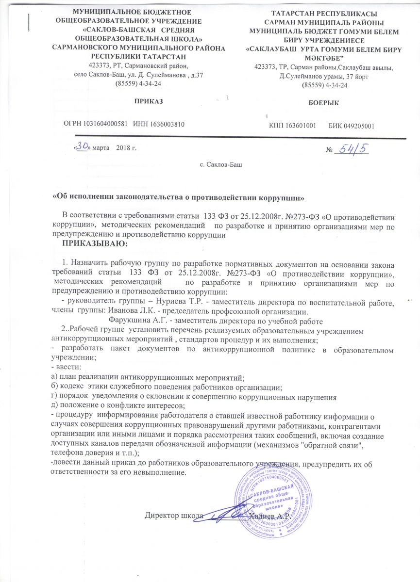 Муниципальное бюджетное общеобразовательное учреждение «Саклов-Башская средняя общеобразовательная школа» Сармановского муниципального района Республики Татарстан / Татарстан Республикасы Сарман муниципаль районы муниципаль белем бирү учреждениесe «Саклау-Баш урта гомуми белем бирү мәктәбе»