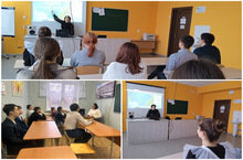 Профориентационный час с сотрудниками Сармановского аграрного колледжа. Валишина Г. С. выступила с презентационном материалом о колледже, его деятельности, направлениях подготовки и приемной компании