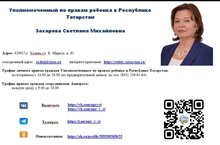 Уполномоченный по правам ребенка в Республике Татарстан Захарова Светлана Михайловна