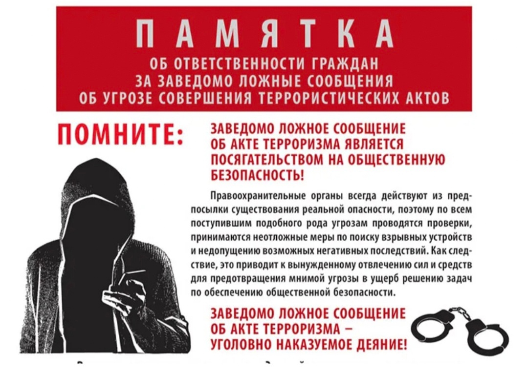 Памятки об ответственности за заведомо ложное сообщение об акте терроризма 27.06.2024