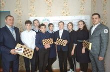 Район советы депутатлары Хабибуллин Ильфат Захитович хэм Газизов Раиль Равилевич Сарайлы мэктэбе укучыларына шахматлар тапшырдылар