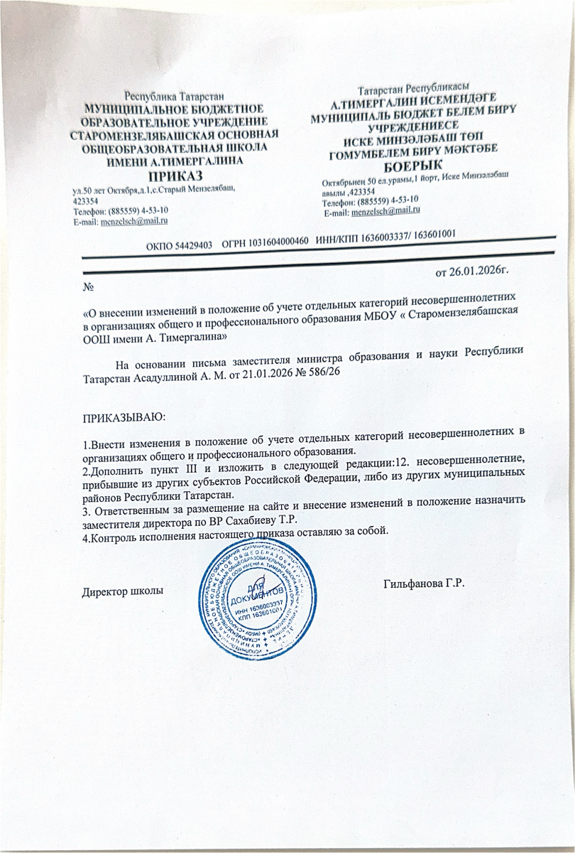 | Короткое название: | МБОУ " Старомензелябашская ООШ имени А.Тимергалина" |