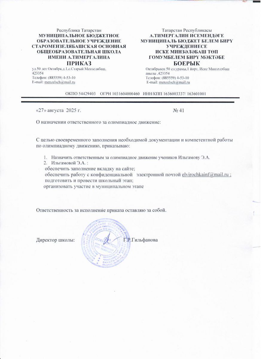 | Короткое название: | МБОУ " Старомензелябашская ООШ имени А.Тимергалина" |
