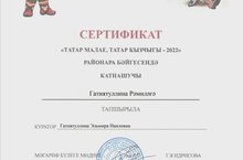 Районара "Татар малае,татар кызчыгы- 2022" бәйгесендә катнашып Гатиятуллина Рәмилә сертификат белән бүләкләнде.