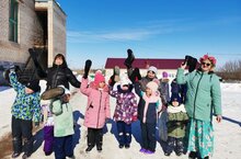 В нашем детском саду прошел праздник "Навруз".К ребятам в гости пришел Дед Мороз и Навруз.Они соревновались между собой.Дед Мороз не хотел уступать,да сил маловато осталось,ведь тепло на улице,весеннее солнце светит.Закончился этот необычный день чаепитием с блинами,которые принесла Навруз.День удался на славу.