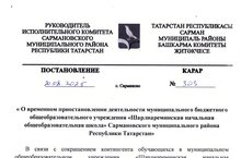 Постановление о приостановлении МБОУ "Шарлиареминская НОШ"