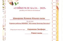 Безнең бакчабызда йөрүче Шакирова Ясминә "Сөйкемле бала-2025"рәсәйкүләм бәйгесендә катнашып диплом белән бүләкләнде.