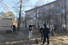 Уборка территории колледжа студентами гр.ЛД-9-11 02.04.2025