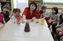 Юные исследователи через опытническую деятельность изучали свойства воды, воздуха, бумаги, смешивали краски, наблюдали, побывали в роли волшебников, когда с помощью краски, соды, жидкого мыла, лимонной кислоты создали цветные вулканы.