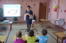 Татар теленнән белем бирү тәрбиячесе "Икмәк яшәү терәге" дигән темага ачык дәрес күрсәтте.Балаларны икмәкнең өстәлгә килгәнче нинди юллар аша узуын аңлатты. Икмәкнең кадерен белергә өйрәтте.