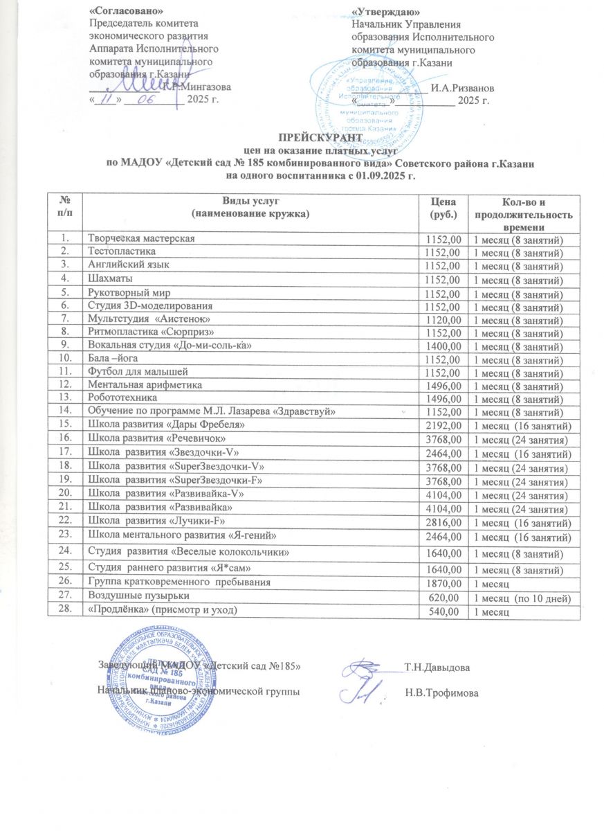 Прейскурант на 2025-2026 учебный год
