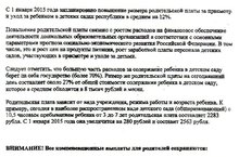 Уважаемые Родители!!! С 1 января 2015 года запланировано повышение размера родительской платы за присмотр и уход за ребенком в детских садах республики в среднем на 12%.
