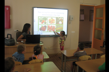 Вот такой вот замечательный урок провела воспитатель средней группы Галимзянова Фардия Газизовна с использованием интерактивной доски. Тема урока "Сәләмәтләр иленә сәяһәт."