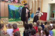 Сегодня в гости к ребятам приехал театр с постановкой "Золтая овечка".