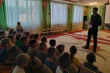 Сегодня, старший инспектор по пропаганде БДД, капитан полиции Л.К.Гилмутдинов провел с детьми подготовительной группы беседу. Он еще раз закрепил знания детей по правилам поведения на дороге, переход по пешеходному переходу, о необходимости иметь на одежде свевозвращающие элементы. Ребята также получили приятные подарки ввиде памяток и свежий номер газеты "Добрая Дорогоа Детства".