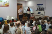 Сегодня у нас прошла очередная встреча с инспекторами по профилактике детского дорожно-транспортного травматизма. Кабирова Ландыш Асхатовна и Мударисова Лилия Масгутовна провели беседы с детьми по правилам поведения на улицах, особенно на проезжей части дорог. Напомнили ребятам о том, что в темное время суток следует надевать одежду со световозвращающими элементами. Ребята остались очень довольными и обещали соблюдать все правила дорожного движения.