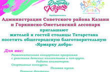 20 мая Администрация Советского района Казани и Горкинско -Ометьевский лесопарк приглашают жителей и гостей столицы Татарстана на общегородскую "Ярмарку Добра" 17.05.2017